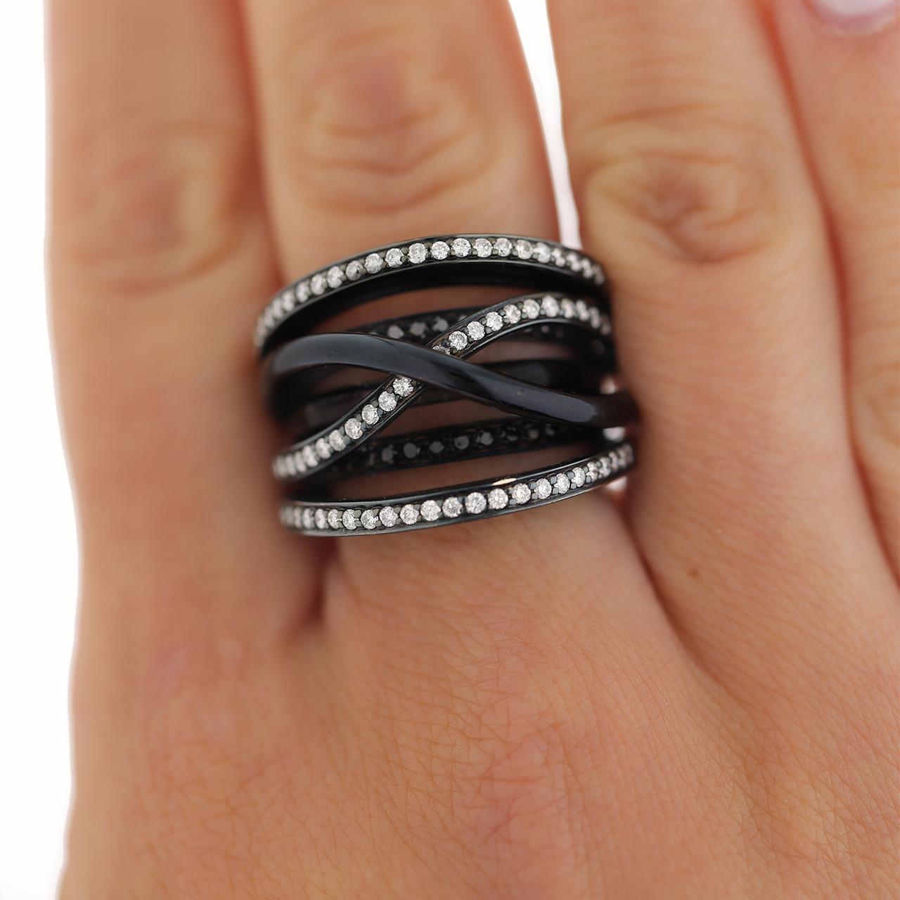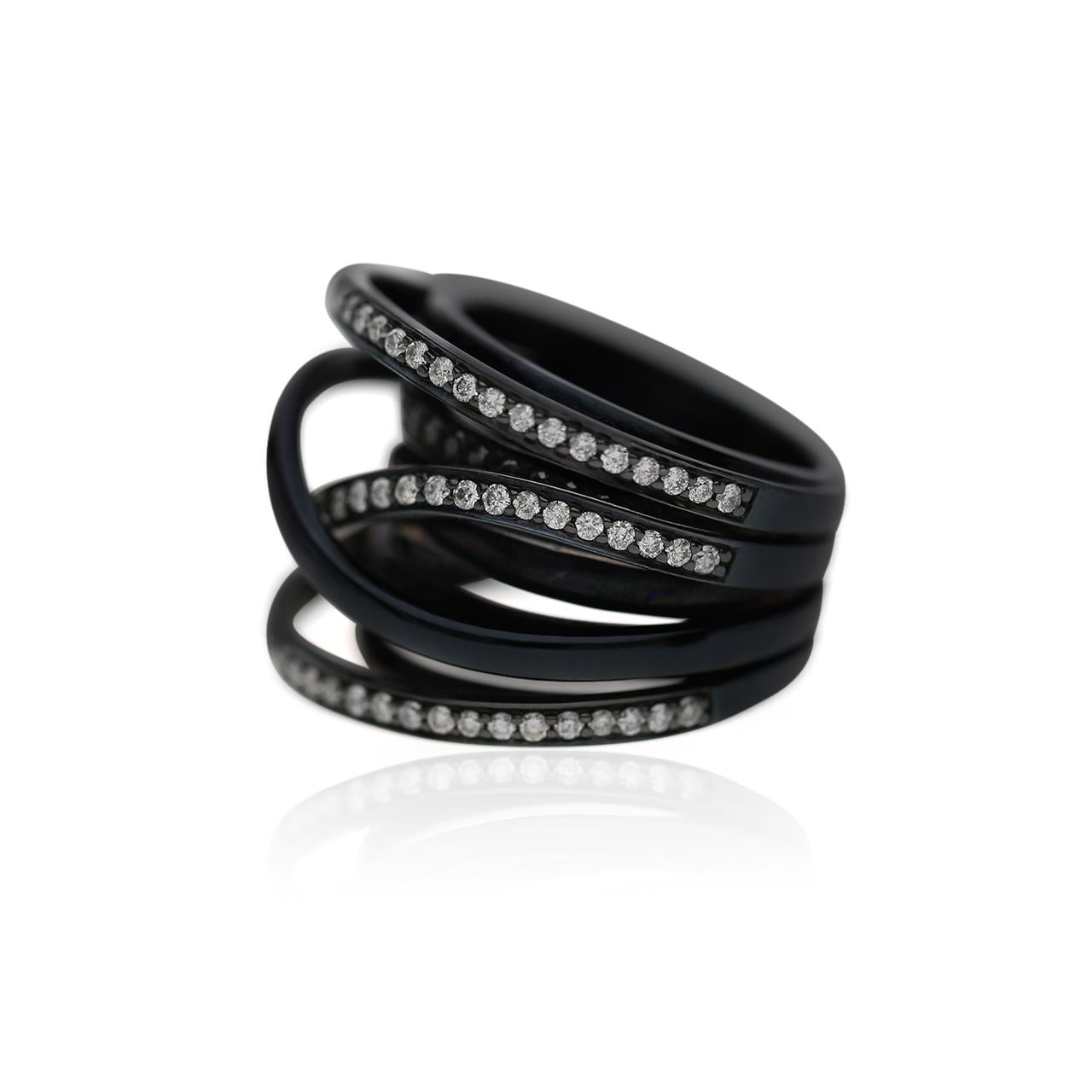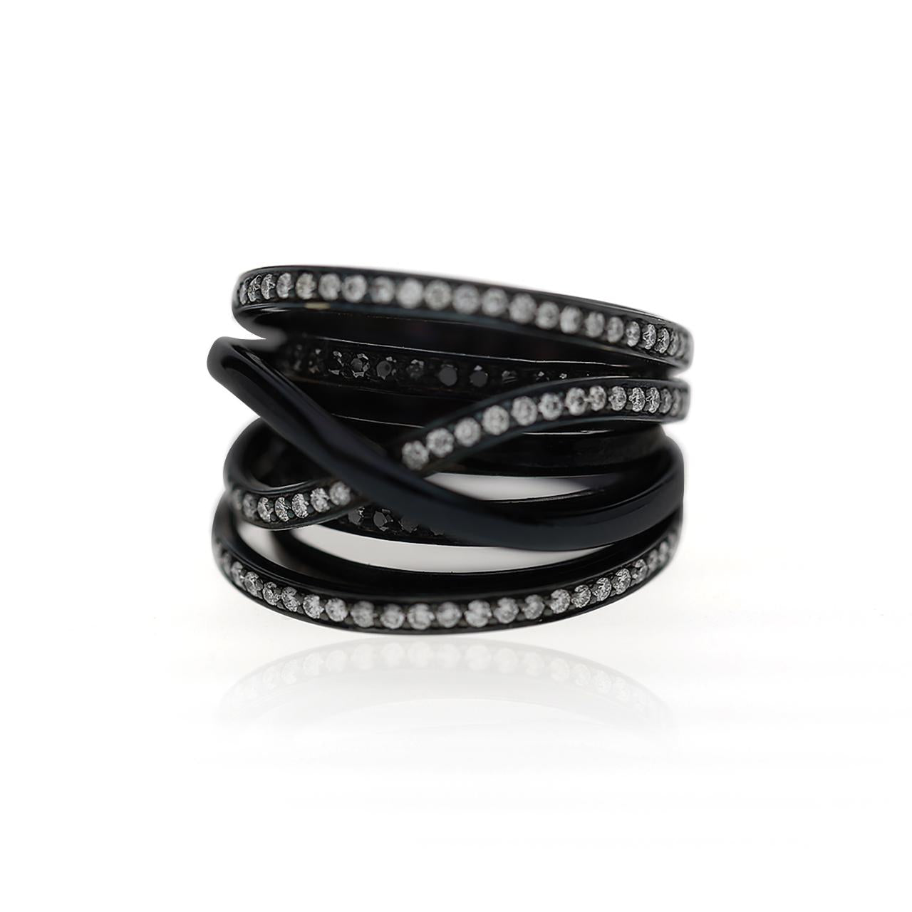 1.4 Carat Diamond Pave Multi-Band Coil 18K Black Gold Overpass Ring