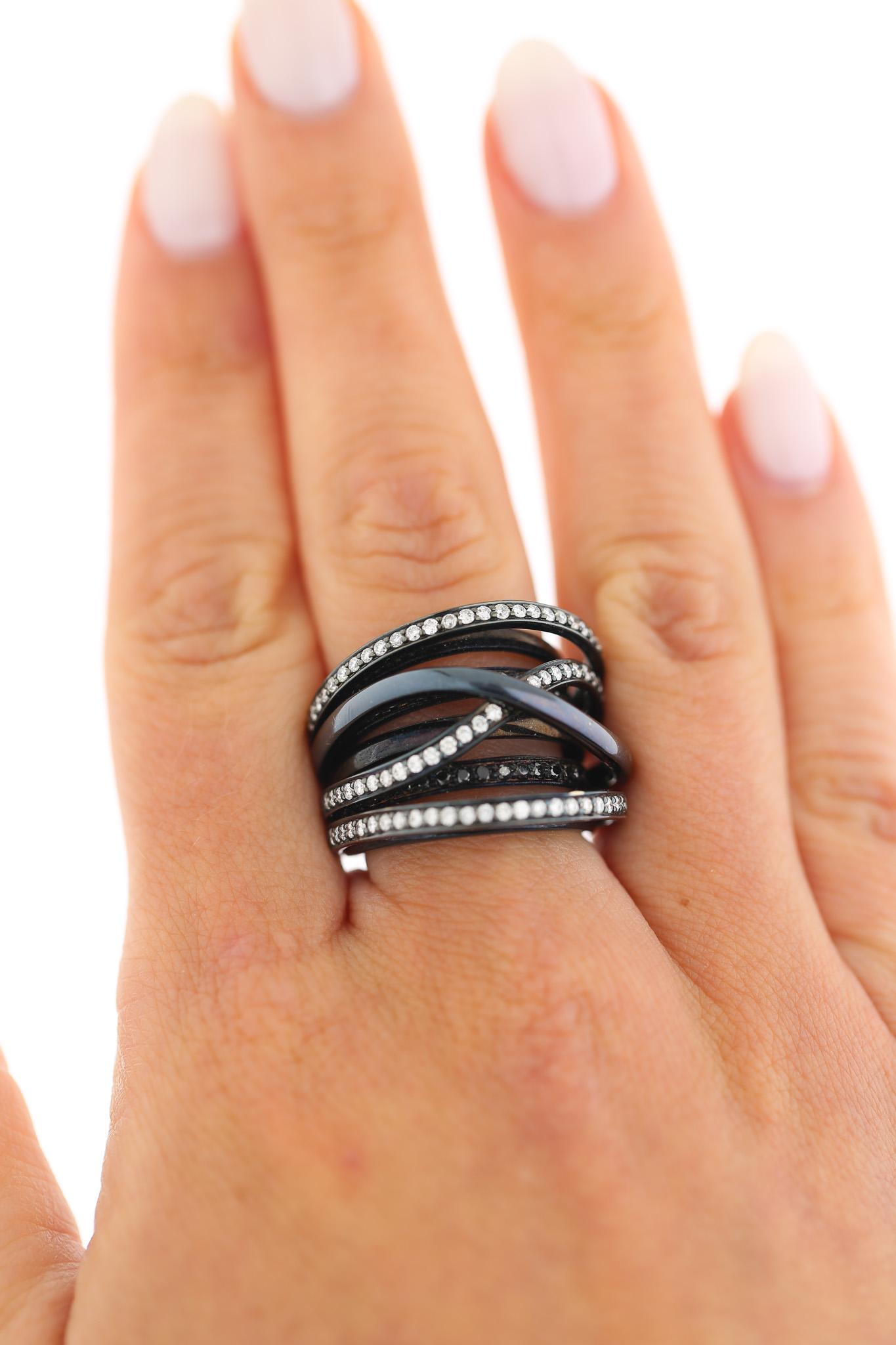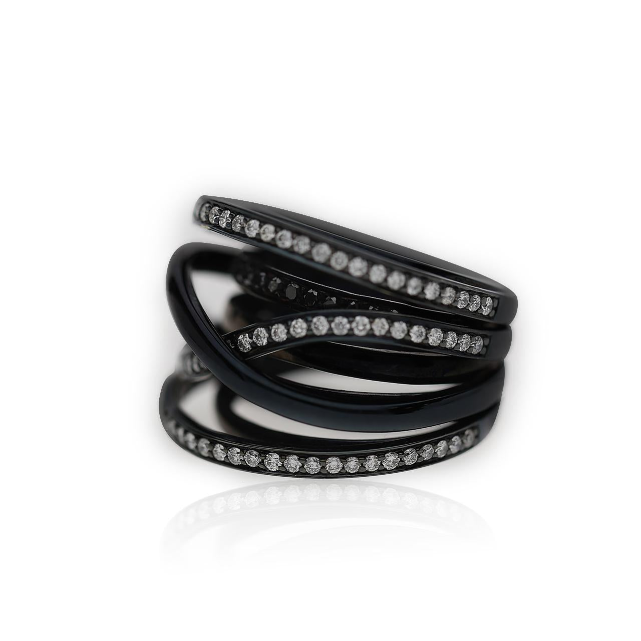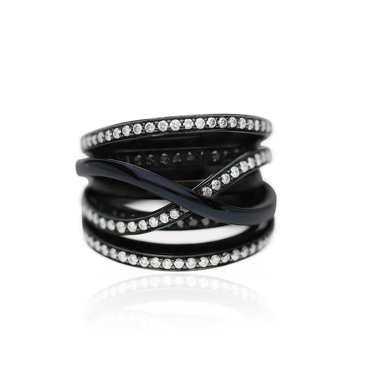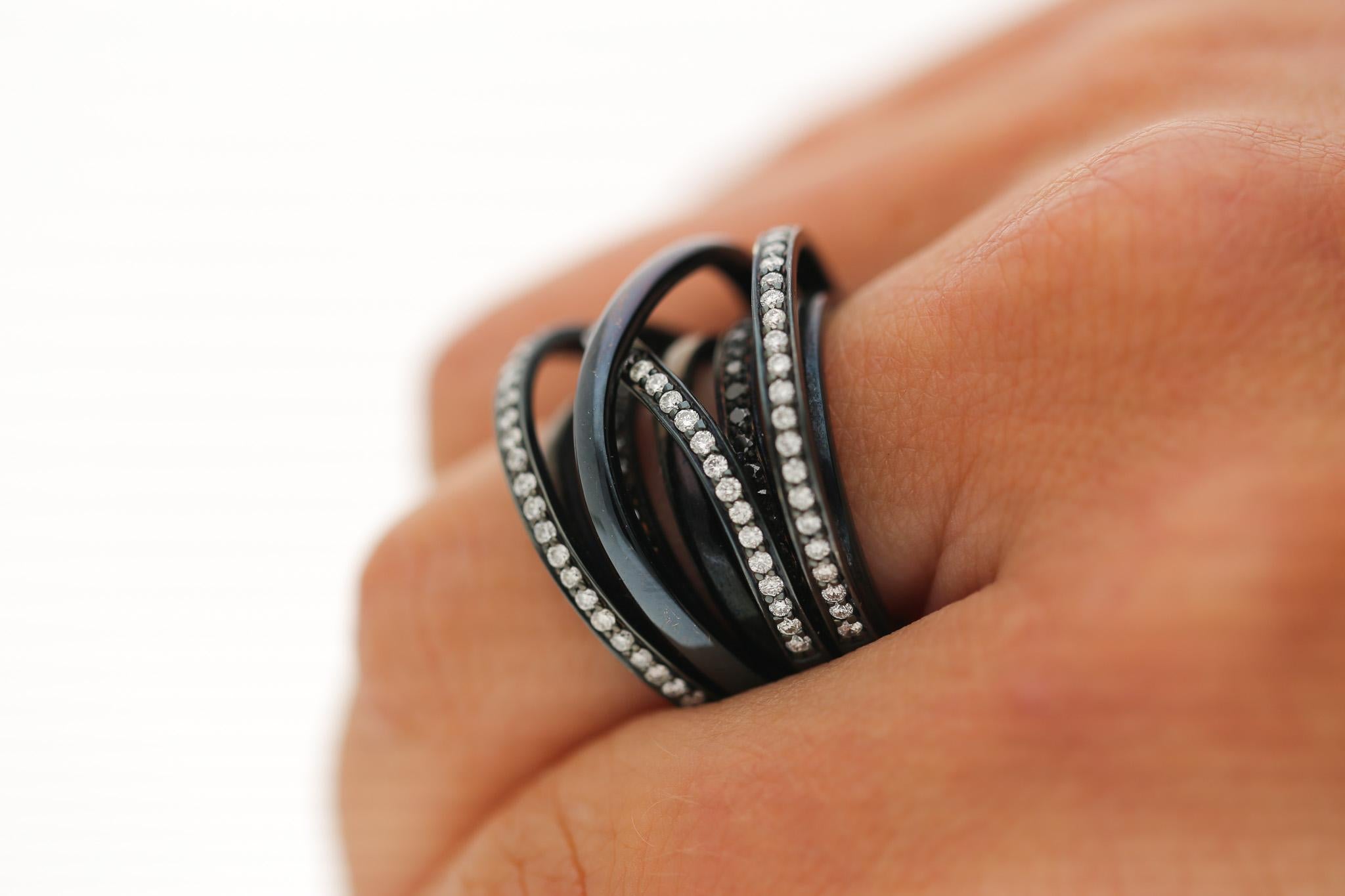 1.4 Carat Diamond Pave Multi-Band Coil 18K Black Gold Overpass Ring