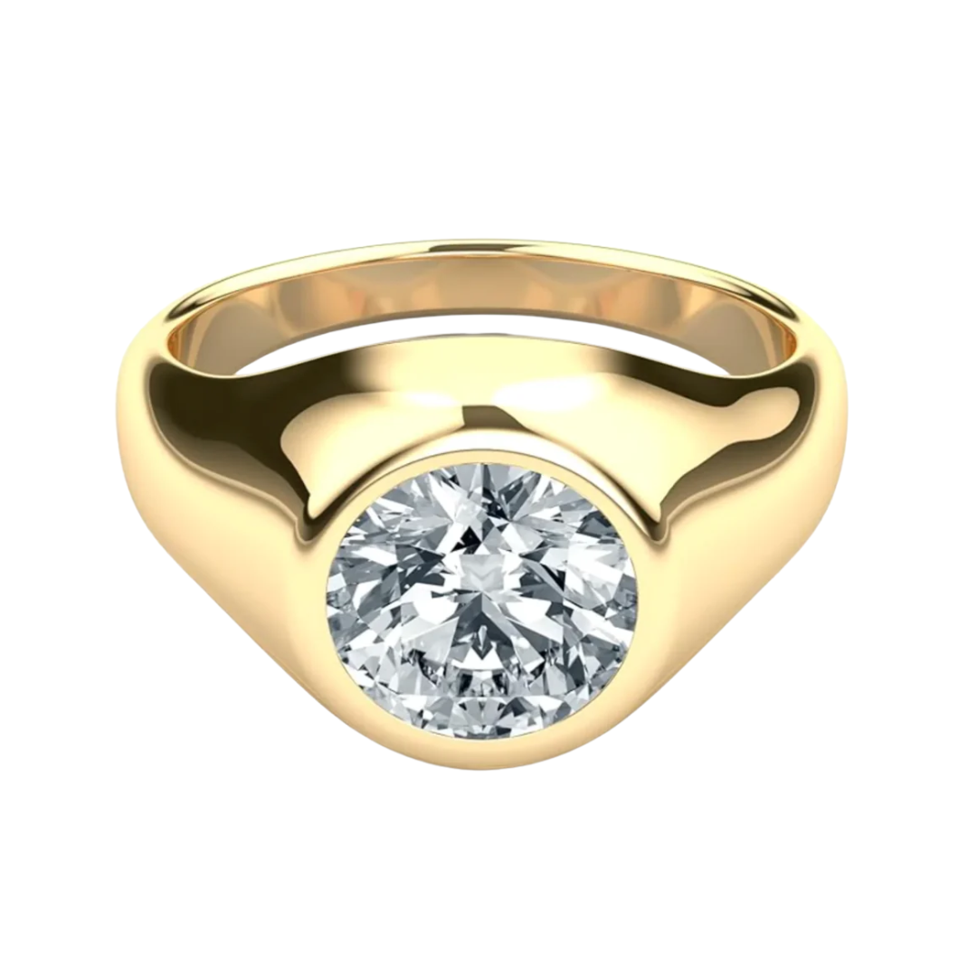 14k massives Gold Herren runder Schliff im Labor gezüchteter Diamant CVD Lünette bündig gesetzter Solitär Ring. IGI oder AGI zertifiziert und bewertet mit Versicherungs-/Einzelhandelswertschätzung.
