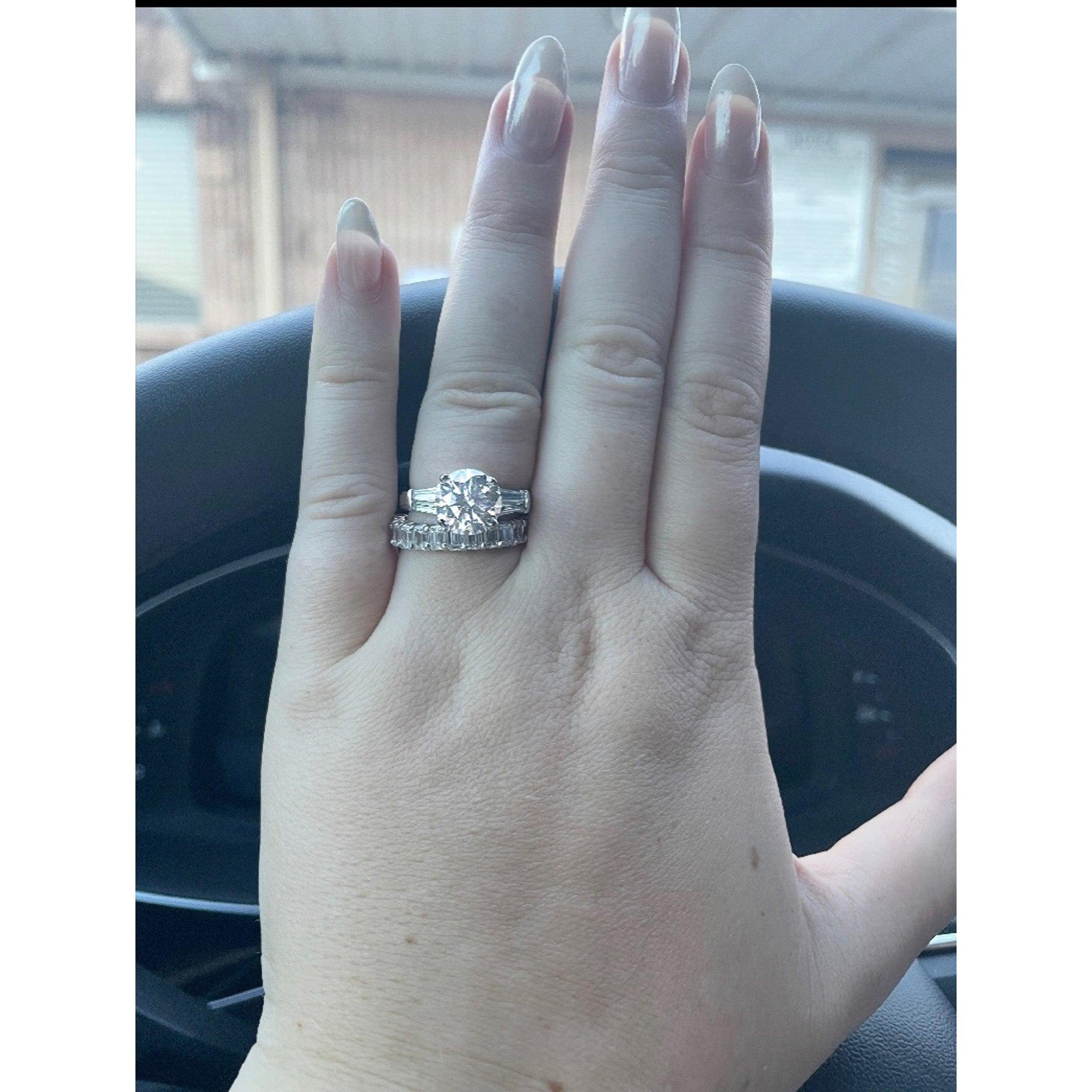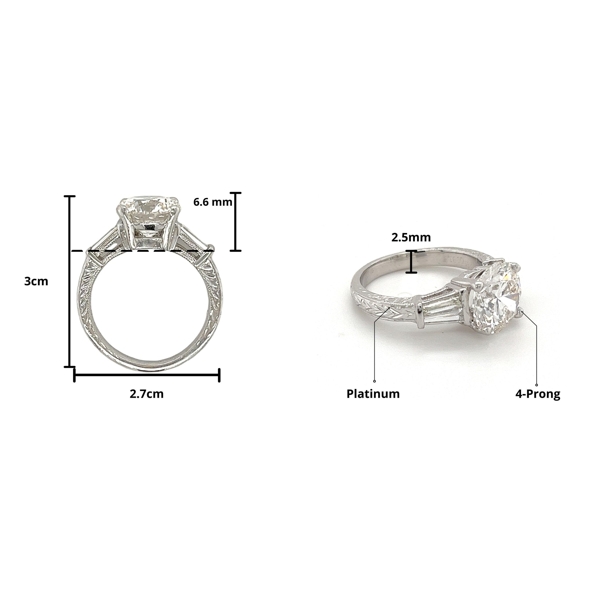 Dieser Ring ist ideal für diejenigen, die auf der Suche nach einem 3ct augenreinen Diamanten in einem Vintage Platin-Seitenstein-Ring sind. Die Ringfassung hat eine Dicke von 2,5 mm, was ihm ein starkes und robustes Gefühl am Finger verleiht. Perfekt für den täglichen Gebrauch und ideal für Damen, die viel mit den Händen arbeiten. Die Krappen sind auch mit Kugelschreiberkanten fixiert, sodass Sie die Angst verlieren können, dass Ihr Ring in Ihrer Kleidung hängen bleibt!