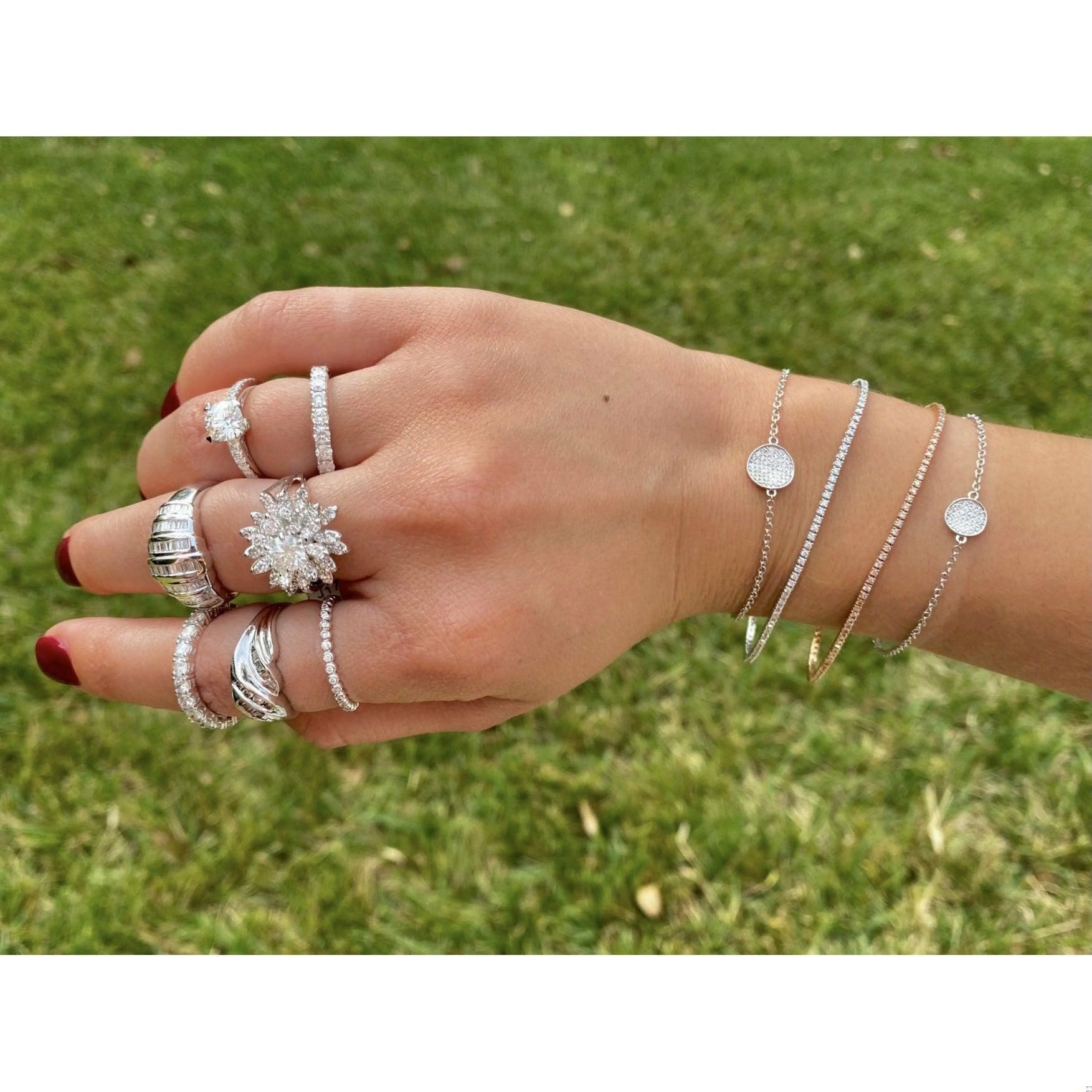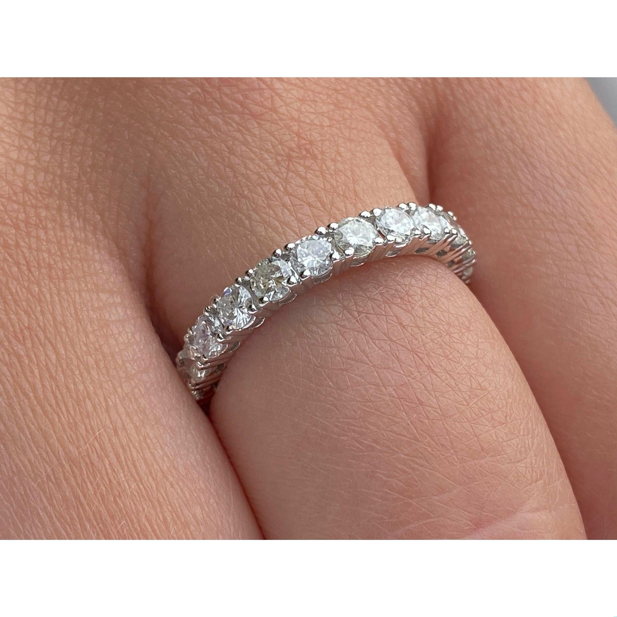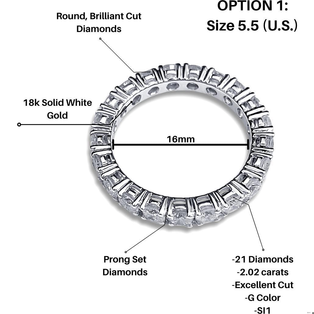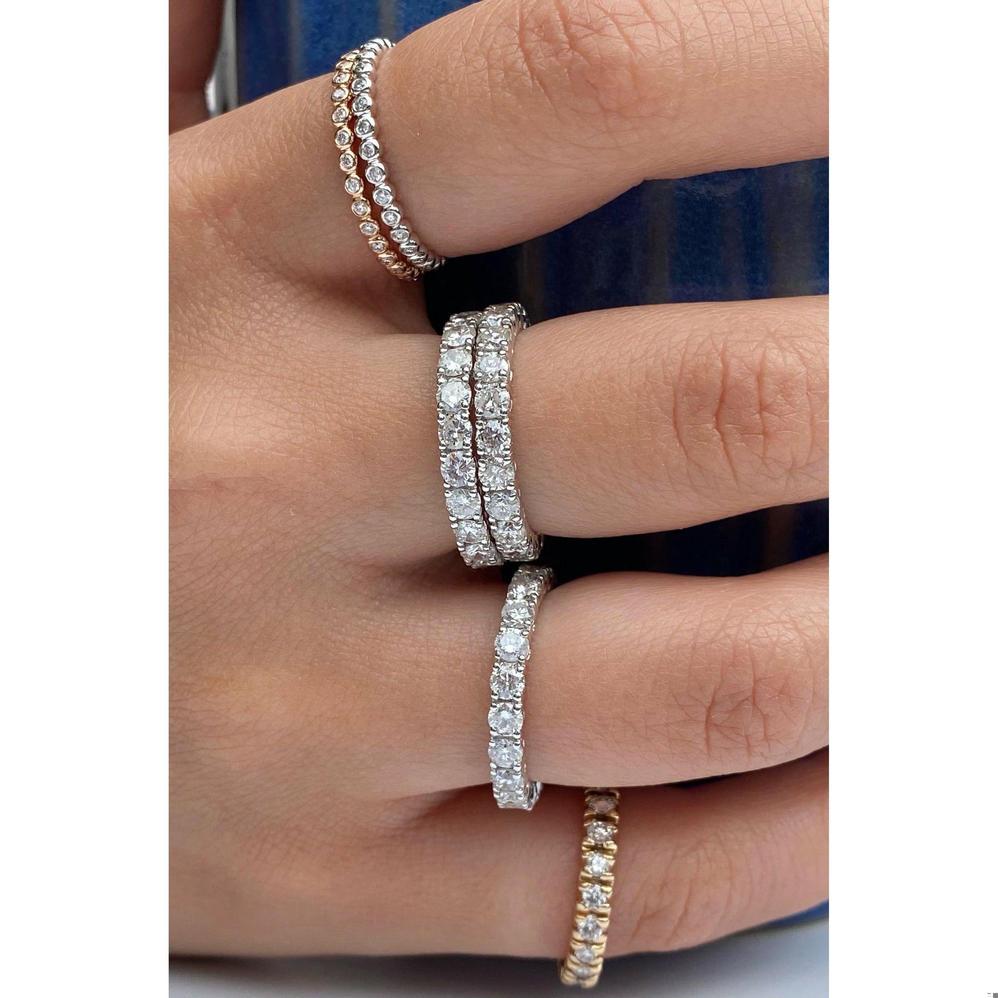 Natürlicher Diamant-Ehering mit Diamonds, die rundum eingefasst sind. Dieses wunderschöne natürliche Diamant-Band ist ideal zum Stapeln oder zum alleinigen Tragen. Rings sind in Größe 5,5 (US) und Größe 7 (US) erhältlich und können nicht in der Größe verändert werden. Alle Diamonds in G-Farbe und mit exzellentem Schliff für optimalen Glanz und Funkeln. Handgefertigt aus glattem 18k massivem Weißgold und mit doppelter Rhodium-Beschichtung für eine lebenslange Nutzung.