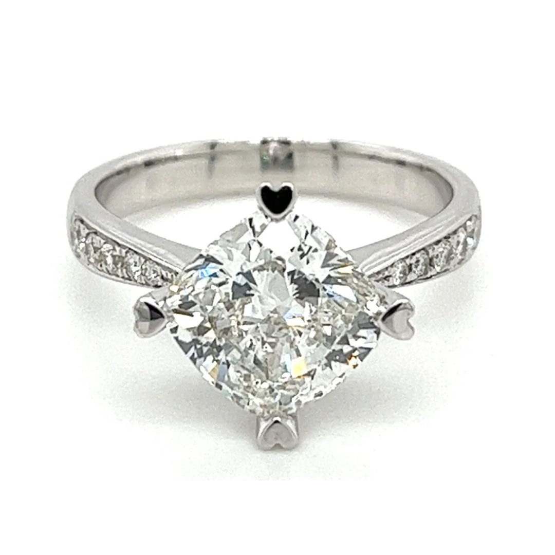Présentation de cette Bague de fiançailles en diamant CVD de laboratoire à cadre carré incliné en or blanc 18 carats. Dotée de 4 griffes en forme de cœur qui se posent sur le rondiste du diamant avec élégance et grâce. Le montage carré incliné et la tige de Bague pincée donnent l'optique d'une pierre centrale plus grande.