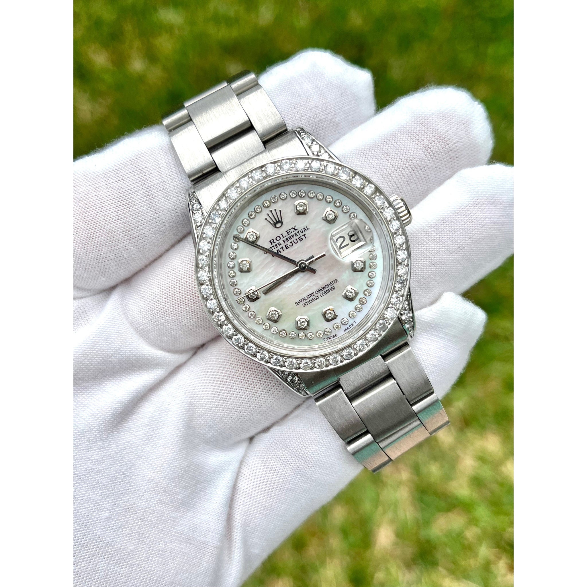 **Disclaimer: All parts and movements are original Rolex parts EXCLUDING the diamond bezel. The diamonds on the hour markers are original Rolex factory diamonds.