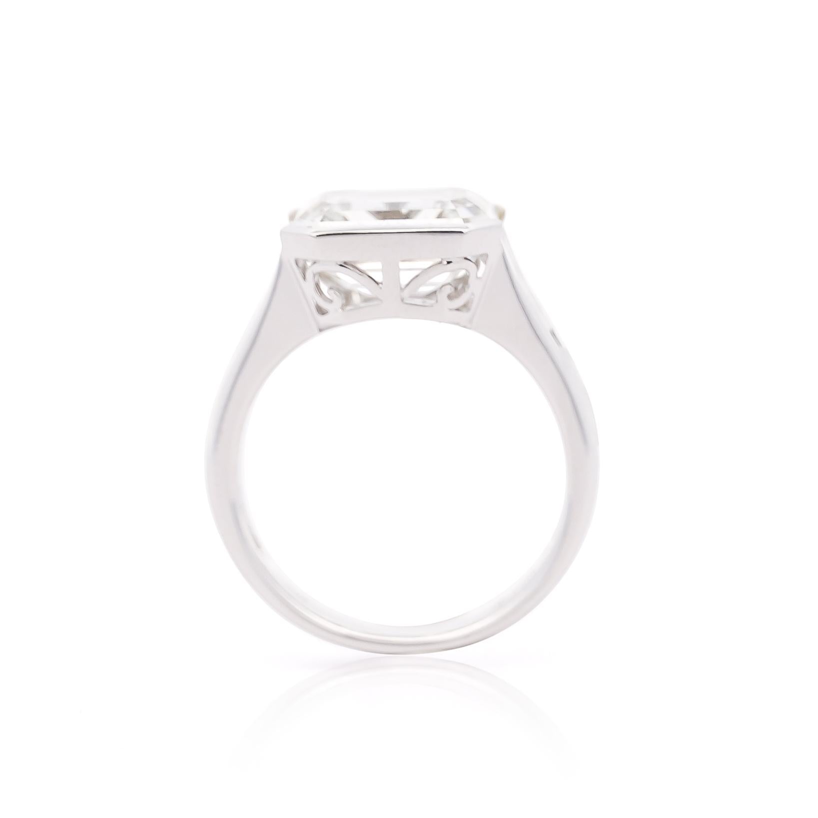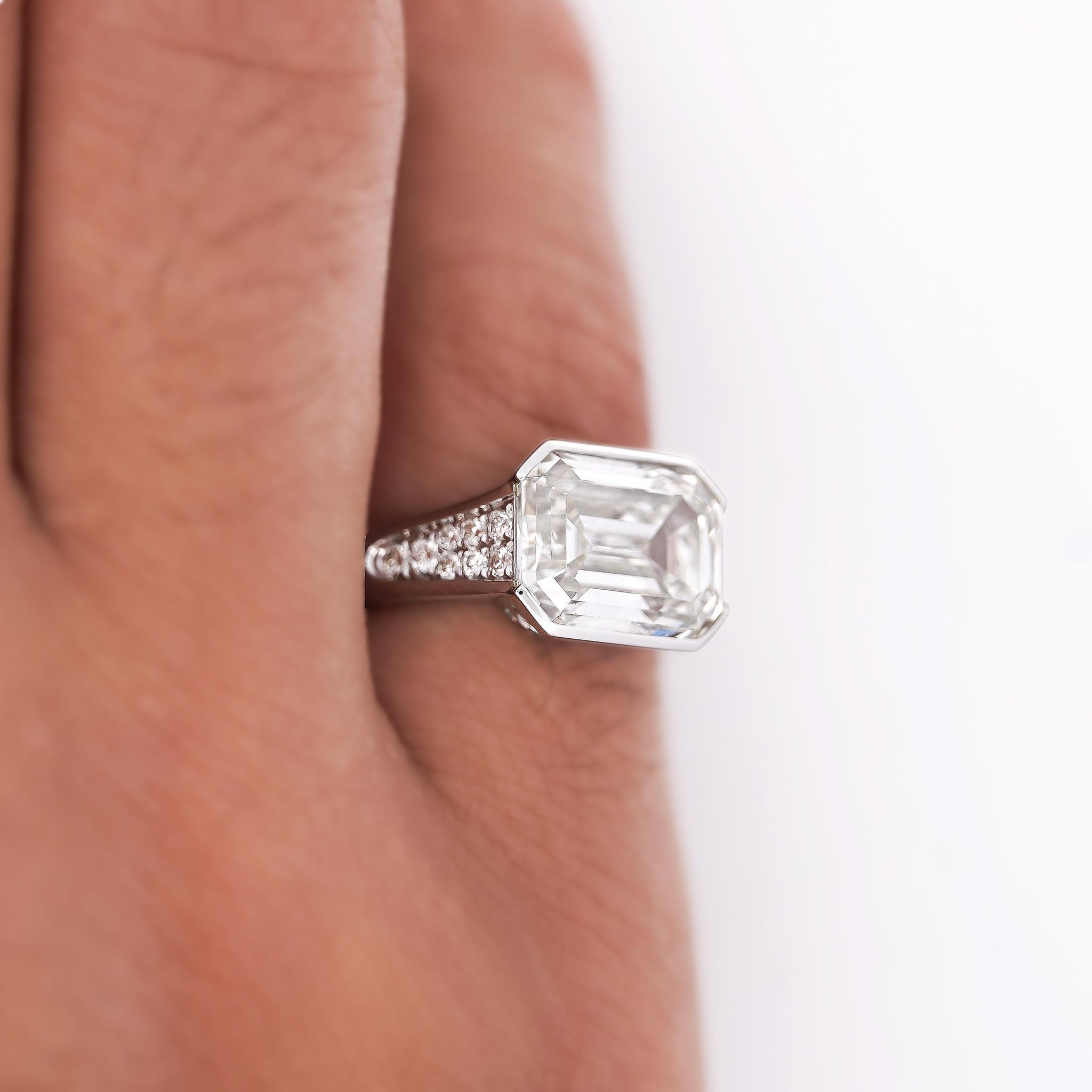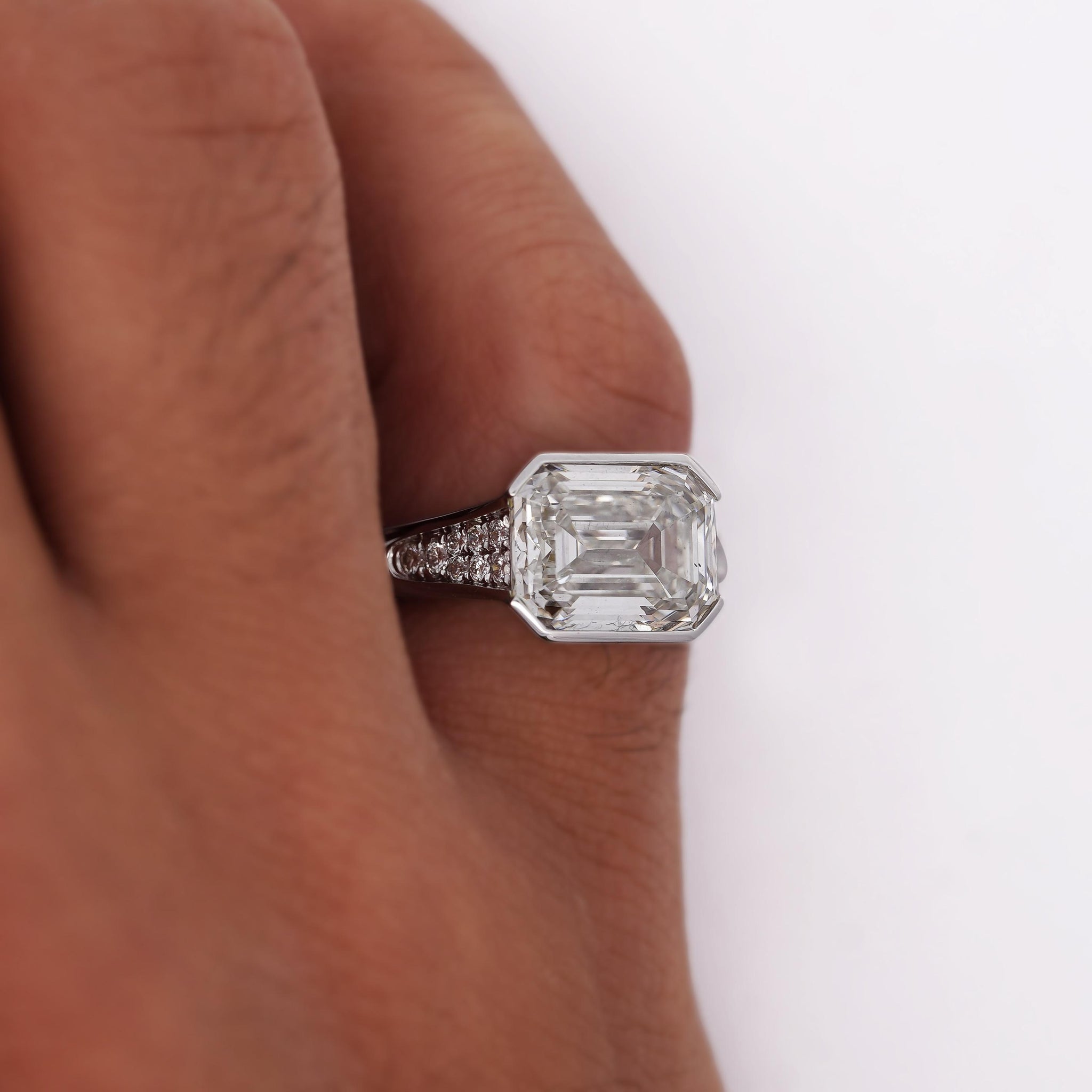 5.53 Carat Emerald Cut Lab Grown Diamond Half Bezel White Gold Ring