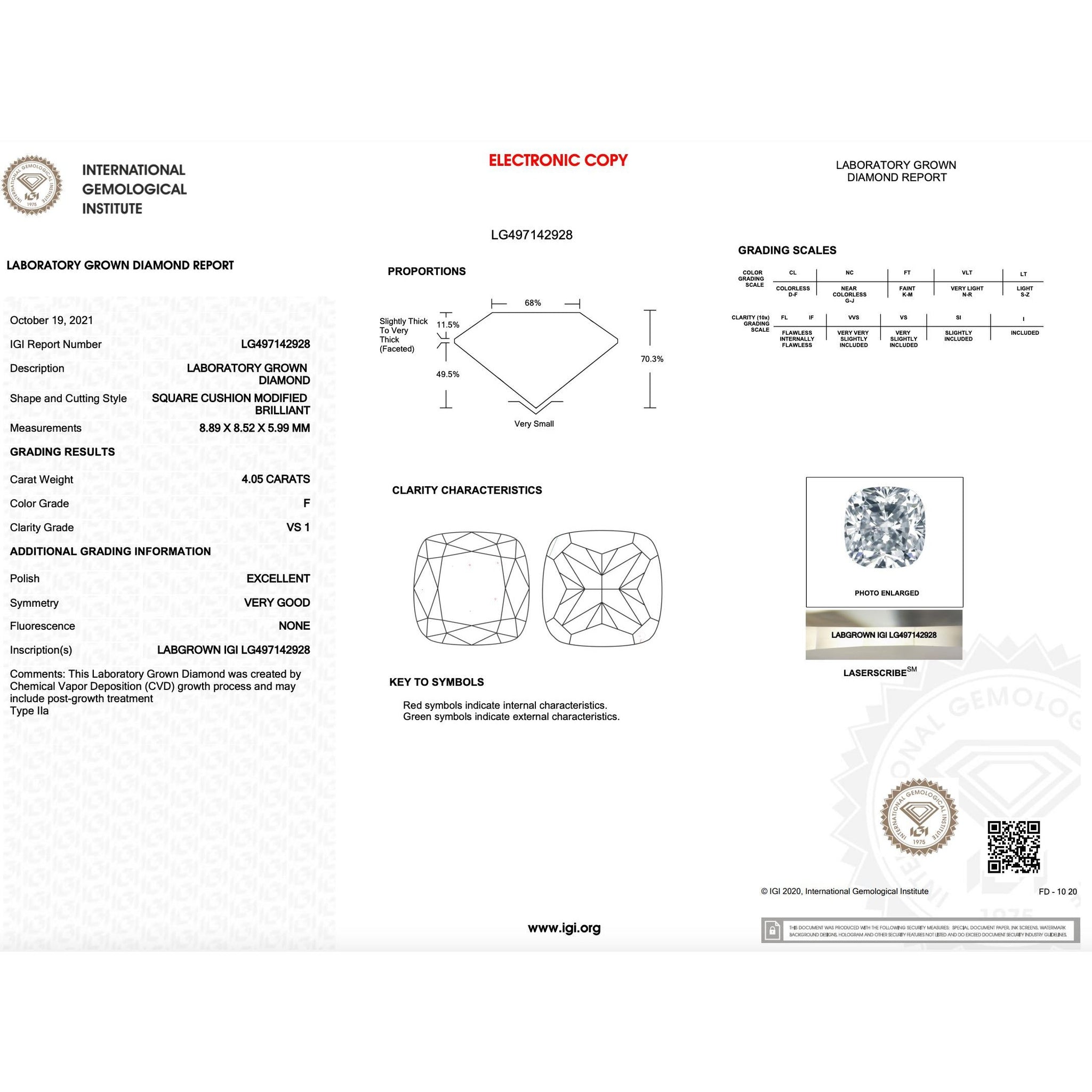 IGI Certificate #: LG497142928