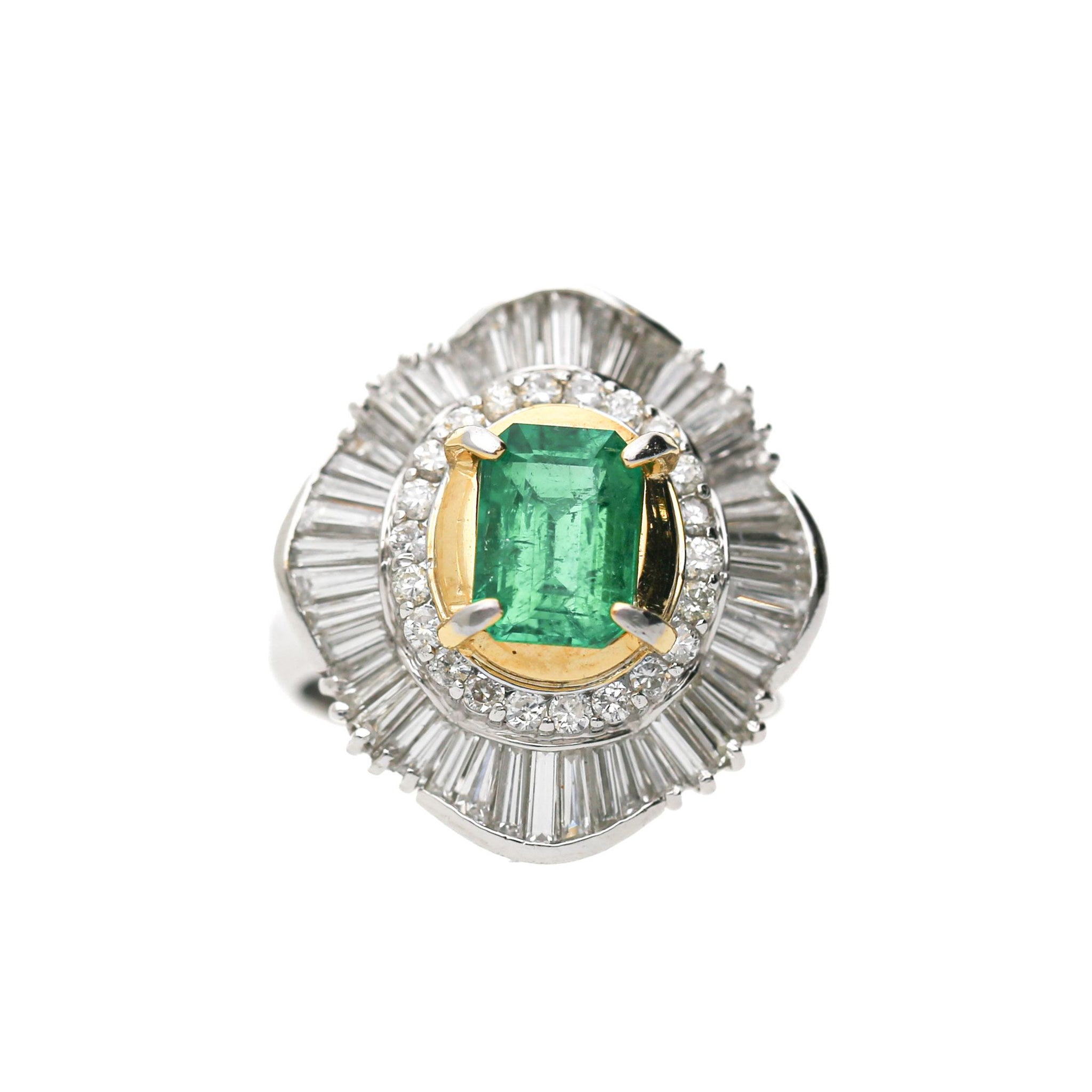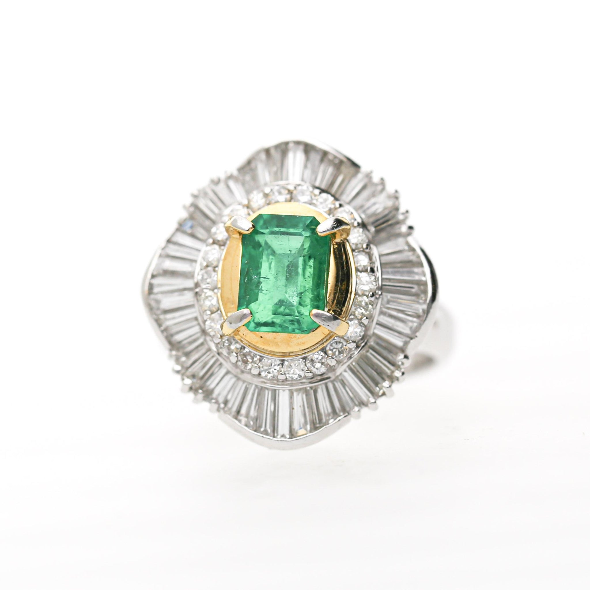 GIA 1.38 Carat Emerald Cut Colombian Emerald & Diamond Platinum Ballerina Ring
