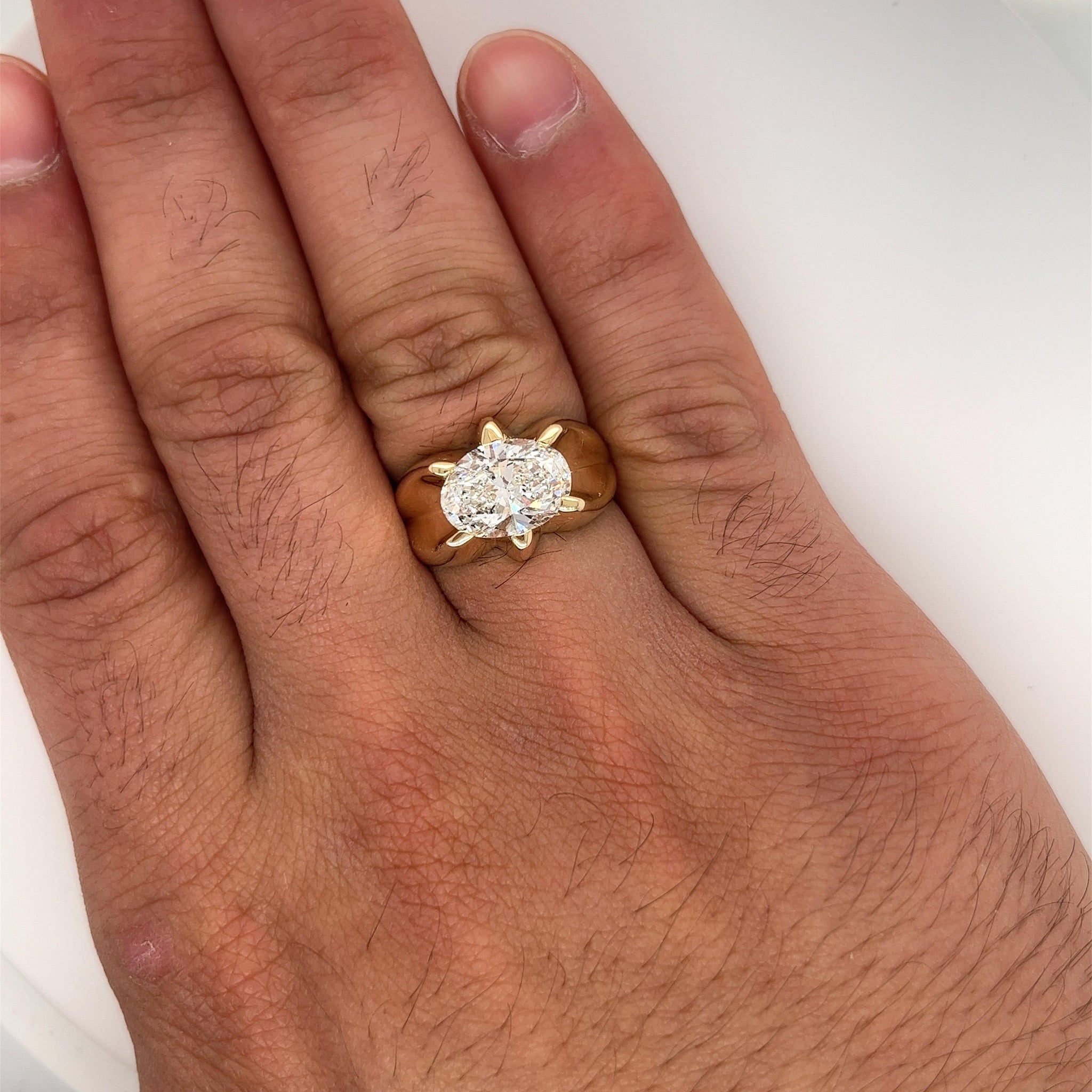 3.20 carat Oval Cut Lab Grown CVD Diamond Solitaire Mens Ring in 14K Gold